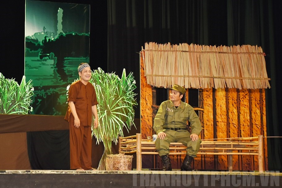 Một cảnh của vở kịch “Cánh đồng rực lửa”(Thanhuytphcm.vn) - Ngày 8/5, Ban Tuyên giáo Quận ủy Quận 10 phối hợp Liên hiệp các Hội Văn học nghệ thuật TPHCM và Sân khấu kịch Quốc Thảo tổ chức buổi biểu diễn vở kịch “Cánh đồng rực lửa” tại Nhà hát Hòa Bình.