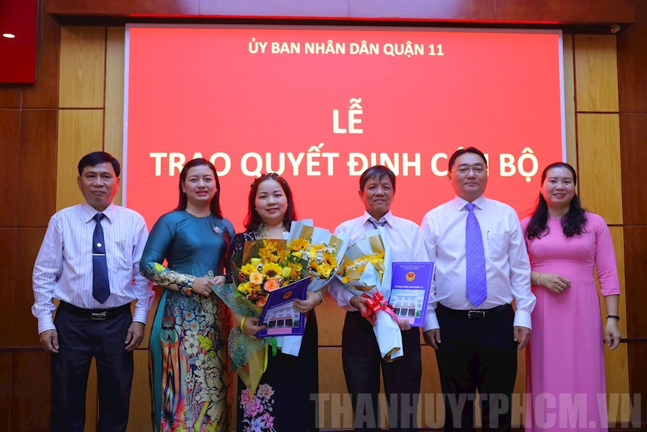 (Thanhuytphcm.vn) - Ngày 28/12, UBND Quận 11 đã tổ chức Lễ trao quyết định điều động và bổ nhiệm cán bộ quản lý giáo dục. Tham dự có các đồng chí: Nguyễn Trần Bình, Ủy viên Ban Thường vụ Quận ủy, Quyền Chủ tịch UBND Quận 11; Huỳnh Kim Tuấn, Ủy viên Ban Thường vụ Quận ủy, Trưởng Ban Tổ chức Quận ủy; Đặng Thị Kim Hoa, Quận ủy viên, Trưởng Phòng Nội vụ Quận.