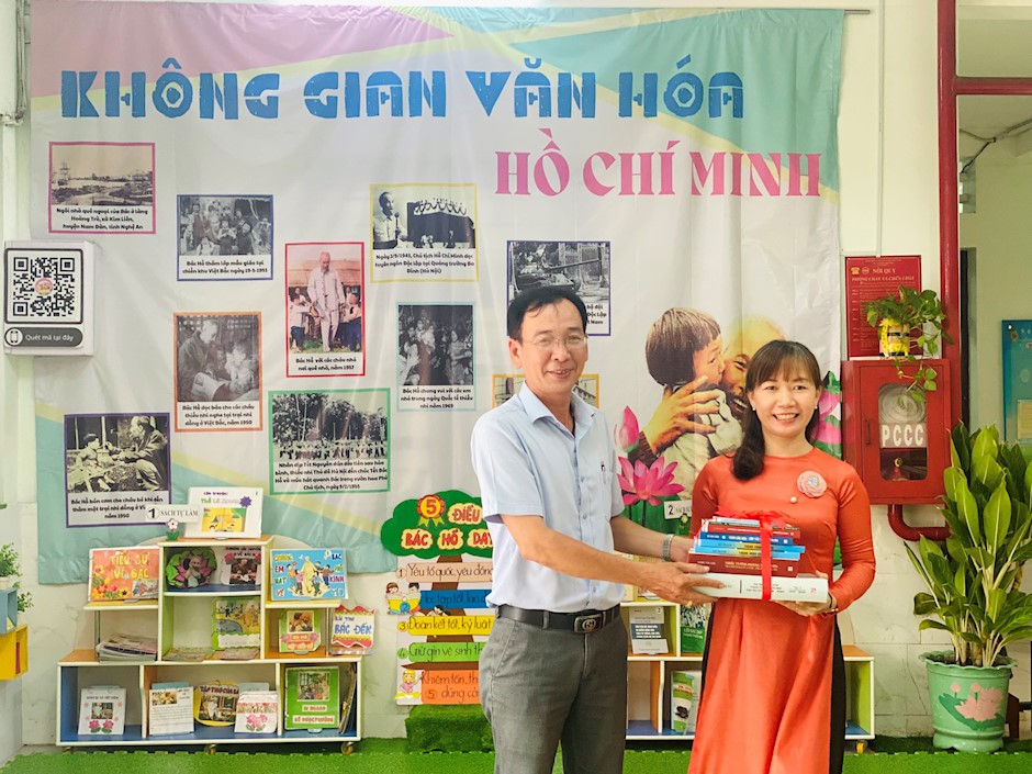Đồng chí Huỳnh Quang Vũ trao tặng bộ sách về Chủ tịch Hồ Chí Minh đến nhà trường(Thanhuytphcm.vn) - Sáng 10/5, Chi bộ Trường Mầm non 15 tổ chức Lễ ra mắt Không gian văn hóa Hồ Chí Minh. Tham dự lễ có các đồng chí: Huỳnh Quang Vũ, Phó Trưởng Ban Tuyên giáo Quận ủy Quận 11.