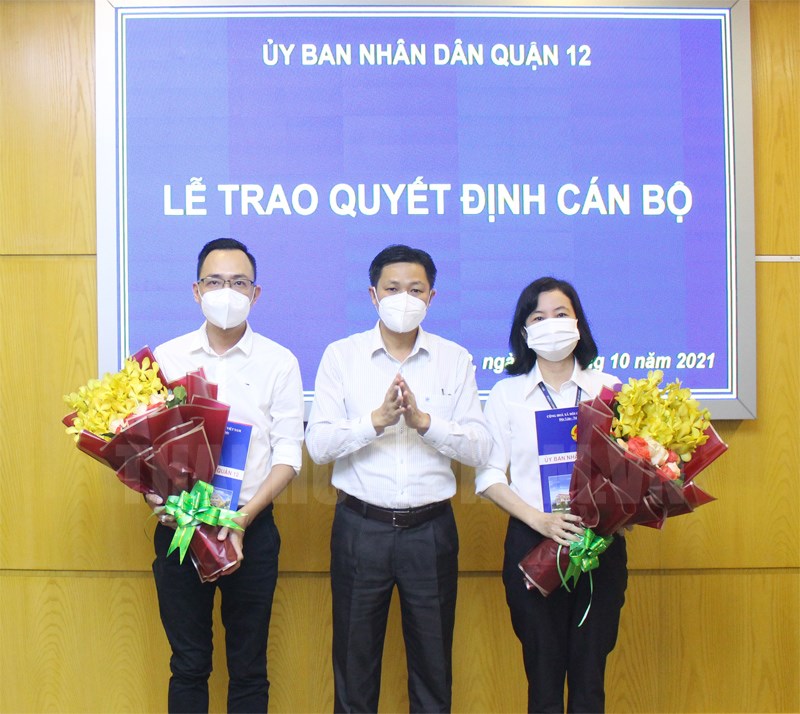 Đồng chí Nguyễn Văn Đức trao quyết định và tặng hoa chúc mừng các cán bộ vừa được bổ nhiệm.(Thanhuytphcm.vn) - Ngày 5/10, UBND Quận 12 tổ chức Lễ trao quyết định cán bộ. Đến dự có đồng chí Nguyễn Văn Đức - Phó Bí thư Quận ủy, Chủ tịch UBND Quận 12.