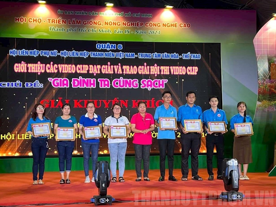 Trao giải cho các đơn vị xuất sắc trong Hội thi video clip chủ đề “Gia đình ta cùng sạch”(Thanhuytphcm.vn)- Chiều 24/6, Hội Liên hiệp Phụ nữ, Ủy ban MTTQ, Liên đoàn Lao động, Hội Liên hiệp Thanh niên Việt Nam, Trung tâm Văn hóa - Thể thao Quận 6 phối hợp tổ chức Ngày hội “Gia đình Việt Nam” năm 2023 tại Công viên Bình Phú.