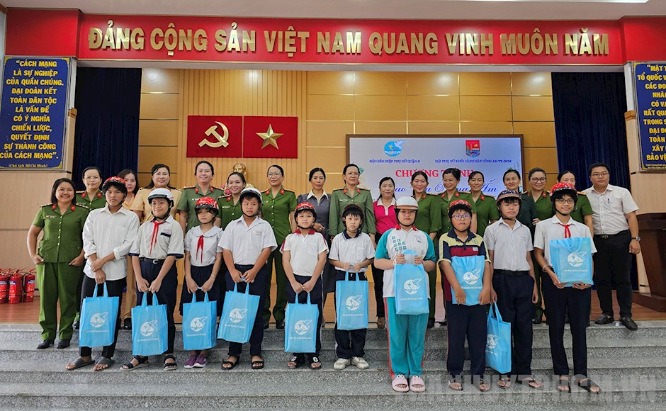 Thực hiện tiêu chí “Đoàn kết, nhân văn” của Phong trào thi đua “Xây dựng người phụ nữ TPHCM đoàn kết, nhân văn, năng động, sáng tạo, khát vọng vươn lên, gia đình hạnh phúc”, trong khuôn khổ chương trình, Hội Phụ nữ Cụm thi đua Cảnh sát – Công an TPHCM và Hội LHPN Quận 8 phối hợp trao tặng 40 phần quà cho học sinh vượt khó học giỏi và phụ nữ vượt khó vươn lên trên địa bàn quận với kinh phí 20 triệu đồng. Bên cạnh đó, Hội Phụ nữ Cụm thi đua Cảnh sát - Công an TPHCM tặng 20 bình chữa cháy đến hội viên, phụ nữ khó khăn trên địa bàn quận; đồng thời, thực hiện lộ trình dừng phục vụ thuê bao sử dụng máy điện thoại chỉ sử dụng công nghệ 2G, Hội LHPN Quận 8 hỗ trợ điện thoại thông minh cho chị Huỳnh Kim Thủy, hội viên phụ nữ Phường 7.
