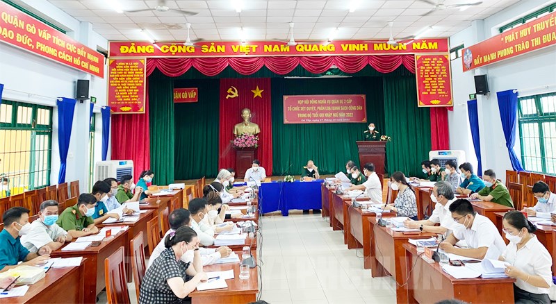Phát biểu kết luận cuộc họp, Chủ tịch UBND quận, Chủ tịch Hội đồng NVQS quận Gò Vấp Nguyễn Trí Dũng đề nghị các thành viên Hội đồng NVQS quận và 16 phường tiếp tục đẩy mạnh tuyên truyền vận động gia đình và công dân chấp hành nghiêm Luật NVQS; tổ chức thực hiện tốt công tác bình cử công khai; tổ chức công tác sơ tuyển sức khoẻ NVQS đúng theo quy định, đồng thời đảm bảo yêu cầu công tác phòng, chống dịch Covid-19; thực hiện nghiêm túc công tác tạo nguồn, bồi dưỡng, rèn luyện, kết nạp đảng viên bảo đảm hoàn thành chỉ tiêu gọi đảng viên chính thức nhập ngũ năm 2022 và những năm tiếp theo; phấn đấu hoàn thành 100% chỉ tiêu giao quân, đảm bảo đạt yêu cầu về chất lượng sức khỏe và chính trị.