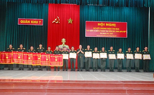 Dịp này, Bộ tư lệnh Quân khu 7 đã trao tặng cờ, bằng khen cho các tập thể cá nhân có thành tích xuất sắc trong thực hiện Phong trào thi đua “xây dựng và quản lý doanh trại chính qui xanh, sạch, đẹp” 5 năm 2012 – 2017.
