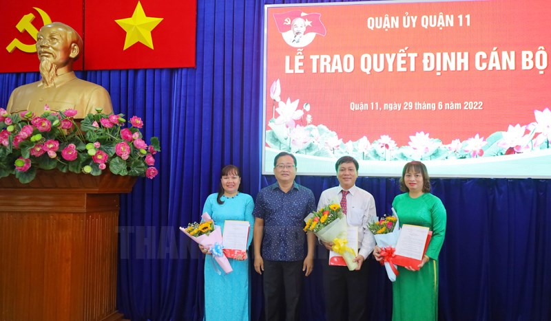 Theo đó, Trưởng Ban Tổ chức Quận ủy Huỳnh Kim Tuấn đã thông qua các Quyết định của Ban Thường vụ Quận ủy Quận 11 ngày 27/6/2022 về chỉ định đồng chí Nguyễn Văn Trí, Quận ủy viên, Bí thư Đảng ủy Phường 13 tham gia Ban Chấp hành, Ban Thường vụ và giữ chức Bí thư Đảng ủy Phường 6 nhiệm kỳ 2020-2025; chỉ định đồng chí Lý Thị Thêm, Phó Bí thư Đảng ủy Phường 6 giữ chức Bí thư Đảng ủy Phường 13 nhiệm kỳ 2020-2025; chỉ định đồng chí Huỳnh Thị Kim Phượng, Đảng ủy viên, Phó Chủ tịch UBND Phường 15 tham gia Ban Chấp hành, Ban Thường vụ và giữ chức Phó Bí thư Đảng ủy Phường 6 nhiệm kỳ 2020-2025.