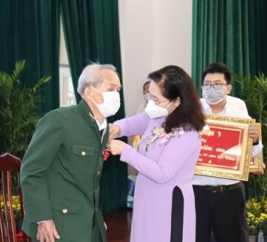 Đồng chí Nguyễn Thị Lệ, Phó Bí thư Thành ủy, Chủ tịch HĐND TPHCM gắn Huy hiệu 60 năm tuổi Đảng cho đồng chí Nguyễn Phương Nam, đảng viên Đảng bộ Phường 2, Quận 3(Thanhuytphcm.vn) - Nhân kỷ niệm 104 năm Cách mạng Tháng Mười Nga (07/11/1917 – 07/11/2021), sáng 6/11, Quận ủy Quận 3 tổ chức trao tặng Huy hiệu Đảng đợt 7/11 cho 19 đồng chí. Đến tham dự có các đồng chí: Nguyễn Thị Lệ, Phó Bí thư Thành ủy, Chủ tịch HĐND TPHCM; Phạm Thành Kiên, Thành ủy viên, Bí thư Quận ủy; Nguyễn Thành Nam, Phó Bí thư Thường trực Quận ủy; Võ Văn Đức, Chủ tịch UBND Quận 3.