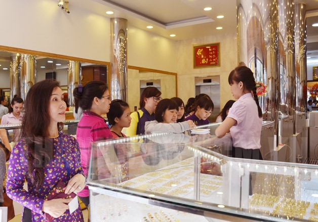 Khách tham quan một cửa hàng tại Phố vàng, bạc, đá trang sức Quận 5. (Ảnh: Minh Thu)