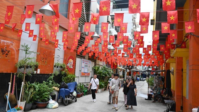 Khu phố 22, hẻm 100, phường Bến Thành rợp cờ Tổ quốc. (Ảnh: SGGP)Sáng 14/10, Đại hội đại biểu Đảng bộ TPHCM lần thứ I, nhiệm kỳ 2025-2030 khai mạc tại Học viện Cán bộ TPHCM (phường Bình Thạnh, TPHCM) trong không khí rộn ràng, phấn khởi và sự trông chờ, tin tưởng của người dân thành phố.