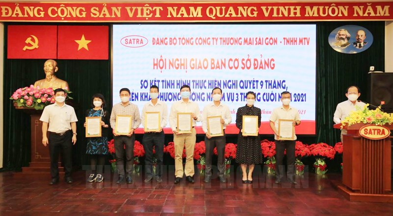 (Thanhuytphcm.vn) - Sáng 27/10 đã diễn ra Hội nghị giao ban cơ sở Đảng sơ kết tình hình thực hiện Nghị quyết 9 tháng, triển khai phương hướng nhiệm vụ 3 tháng cuối năm của Đảng bộ Tổng Công ty Thương mại Sài Gòn TNHH MTV (Satra). Đồng chí Nguyễn Hữu Nghĩa, Bí thư Đảng ủy, Chủ tịch HĐTV Satra chủ trì hội nghị.