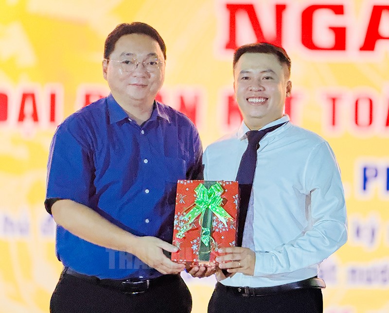 Đồng chí Nguyễn Trần Bình trao quà chúc mừng tại Ngày hội.Tiếp tục vận động nhân dân tham gia các hoạt động bảo vệ môi trường