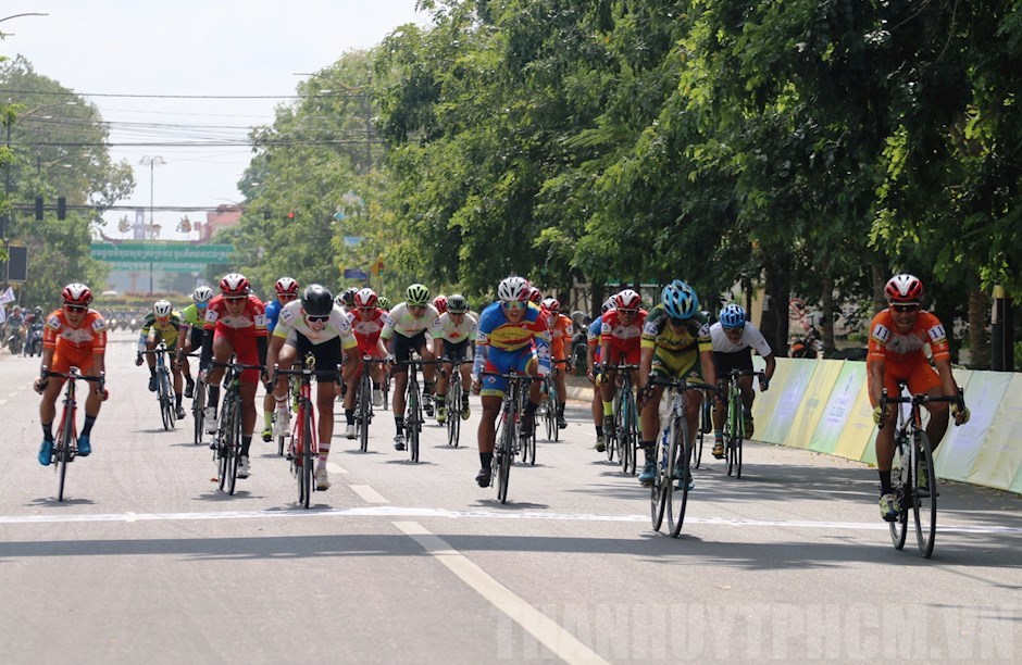 Đoàn đua về đích tại tỉnh Kampong Cham (Campuchia)(Thanhuytphcm.vn) - Ngày 23/10, cuộc đua xe đạp Nam Kỳ khởi nghĩa tranh Cúp phát thanh VOH lần thứ 22 năm 2019, vòng đua 3 nước Việt Nam - Campuchia - Lào đã thi đấu chặng 3, từ thủ đô Phnom Penh đến Kampong Cham (Campuchia), lộ trình 114 km.