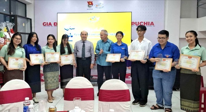 Tổng Lãnh sự nước Cộng hòa Dân chủ nhân dân Lào tại TPHCM Phonesy Bounmixay (thứ 5 từ phải qua) và đại diện Liên hiệp các tổ chức hữu nghị TPHCM trao thưởng cho các sinh viên đoạt giải (Ảnh SGGP)Tối 29/9, Ký túc xá Sinh viên Lào tại TPHCM tổ chức kỷ niệm 21 năm thành lập (29-9-2004 - 29-9-2025), với sự tham dự của lãnh đạo Thành phố, cơ quan ngoại giao Lào, Campuchia và đông đảo sinh viên.