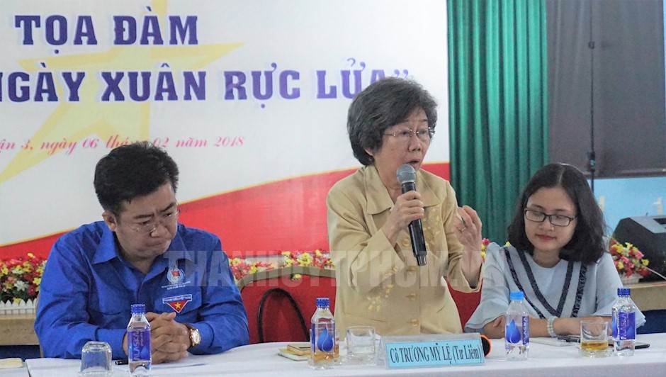 Cô Trương Mỹ Lệ kể về các tấm gương liệt sĩ hy sinh 50 năm trước(Thanhuytphcm.vn) - Kỷ niệm 50 năm cuộc Tổng tiến công và nổi dậy Xuân Mậu Thân 1968, ngày 8/2, Quận đoàn Quận 3 đã tổ chức Tọa đàm “Những ngày xuân rực lửa”.