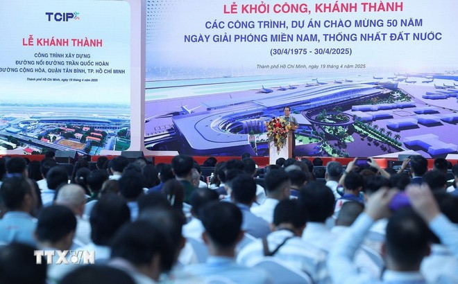 Thủ tướng Phạm Minh Chính và Bí thư Thành ủy Thành phố Hồ Chí Minh Nguyễn Văn Nên và các đại biểu gắn biển công trình Nhà ga T3, Cảng hàng không quốc tế Tân Sơn Nhất chào mừng kỷ niệm 50 năm Ngày Giải phóng miền Nam, thống nhất đất nước. (Ảnh: TTXVN)Huy động sức mạnh đại đoàn kết toàn dân tộc, sức mạnh tổng hợp của cả hệ thống chính trị với tinh thần "trên dưới đồng lòng, dọc ngang thông suốt," tranh thủ sự ủng hộ, sự vào cuộc của nhân dân, doanh nghiệp. Với phương châm: Đảng đã chỉ đạo, Chính phủ thống nhất, Quốc hội đồng tình, nhân dân ủng hộ, Tổ quốc mong đợi-chỉ bàn làm, không bàn lùi.