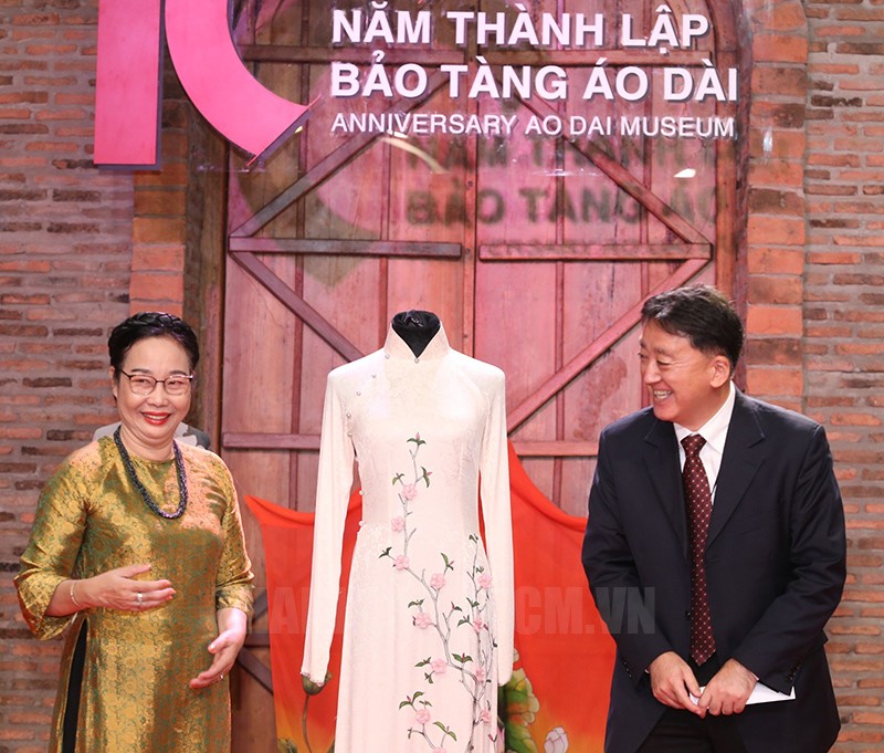 Các đại biểu chụp hình lưu niệm tại lễ kỷ niệm.Bảo tàng Áo dài là một trong hai bảo tàng tư nhân trực thuộc nhóm bảo tàng chuyên đề của Sở Văn hóa và Thể thao TPHCM, được khởi xướng và xây dựng từ ý tưởng của họa sĩ – nhà thiết kế Sĩ Hoàng. Từ năm 2015, Bảo tàng Áo dài trở thành công trình văn hóa do Công ty Cổ phần Dấu Ấn Việt Nam sở hữu, quản lý và vận hành.