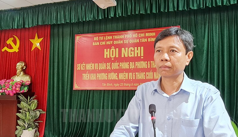 Phát biểu chỉ đạo tại hội nghị, Chủ tịch UBND quận Tân Bình Nguyễn Bá Thành đề nghị trong thời gian tới Ban Chỉ huy Quân sự quận và Ban Chỉ huy quân sự 15 phường tiếp tục tham mưu Đảng ủy, chỉ huy các cấp và cấp ủy, chính quyền địa phương thực hiện tốt chức năng quản lý Nhà nước về nhiệm vụ quân sự, quốc phòng; tham mưu, chỉ đạo thực hiện tốt nhiệm vụ diễn tập chiến đấu phòng thủ; thực hiện tốt công tác giáo dục, bồi dưỡng kiến thức quốc phòng, an ninh cho các đối tượng. Chuẩn bị công tác tuyển quân năm 2024 đảm bảo đủ 100% chỉ tiêu giao. Thực hiện nghiêm nền nếp, chế độ sẵn sàng chiến đấu, nắm chắc tình hình địa bàn, kịp thời tham mưu xử lý các tình huống, không để bị động, bất ngờ; tập trung đẩy mạnh các hoạt động giáo dục truyền thống, phối hợp với các ban, ngành đoàn thể quận tham mưu, tổ chức thực hiện tốt công tác dân vận, chính sách; bảo đảm tốt công tác hậu cần, tài chính kỹ thuật cho các nhiệm vụ quân sự, quốc phòng của địa phương.