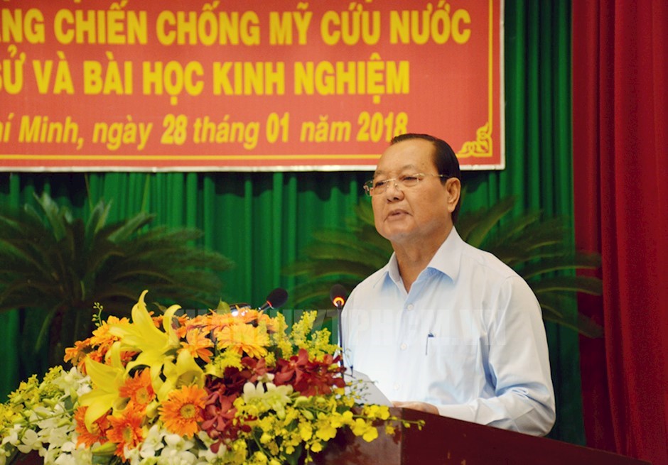 Hôm nay, trong không khí chuẩn bị đón Xuân Mậu Tuất, thành phố Hồ Chí Minh cùng với cả nước xúc động và rất đỗi tự hào nhớ đến những ngày tháng hào hùng của dân tộc trong cuộc Tổng tiến công và nổi dậy Xuân Mậu Thân 1968. Nhân dịp này, mỗi chúng ta bày tỏ lòng biết ơn vô hạn đến các đồng chí lãnh đạo, chỉ huy, cán bộ, chiến sĩ, đồng bào thuộc nhiều giới, nhiều dân tộc, tôn giáo,... ở mọi miền Tổ quốc đã cùng viết nên thiên anh hùng ca Xuân Mậu Thân 1968, những người còn sống và những người đã mãi mãi trở thành “dáng đứng Việt Nam” anh hùng; xin bày tỏ lòng biết ơn sâu sắc đối với các gia đình liệt sĩ, thương binh, gia đình có công với cách mạng tại thành phố và cả nước đã có người thân hy sinh trong Xuân Mậu Thân 1968 và trong suốt chiều dài của cuộc trường kỳ kháng chiến để giải phóng Sài Gòn, giải phóng miền Nam, thống nhất đất nước. Quân và dân ta đã thực hiện nguyện vọng tha thiết của Bác Hồ qua bài thơ Mừng Xuân 1968: “Tiến lên! Toàn thắng ắt về ta!”.