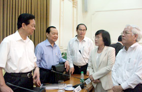 Thủ tướng Chính phủ Nguyễn Tấn Dũng trao đổi với lãnh đạo TPHCM.(Website TU)- Ngày 14-3, Thủ tướng Chính phủ Nguyễn Tấn Dũng đã có buổi làm việc với TPHCM về cơ chế, chính sách giải quyết nhà ở sinh viên, công nhân các khu công nghiệp - khu chế xuất (KCN-KCX), người có thu nhập thấp. Tại buổi làm việc, Thủ tướng Nguyễn Tấn Dũng đã quyết định cho phát hành 4.000 tỷ đồng trái phiếu Chính phủ xây dựng thí điểm nhà ở cho các đối tượng trên tại TPHCM. Đối với các dự án nhà ở cho công nhân được miễn tiền sử dụng đất, tiền thuê đất, được điều chỉnh tăng mật độ xây dựng, hệ số sử dụng đất 1,5 lần…