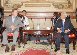 (Website TU)- Chiều 6-7, Chủ tịch UBND TP Lê Hoàng Quân đã tiếp Thượng nghị sĩ James Webb, Nghị sĩ đảng Dân chủ bang Virginia (Hoa Kỳ), Chủ tịch Tiểu ban Đông Á-Thái Bình Dương, Ủy ban Đối ngoại Thượng viện Hoa Kỳ, đến chào xã giao nhân dịp ông đến thăm và làm việc tại Việt Nam.