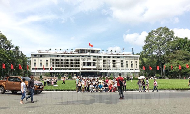Trong đó, điểm tham quan di tích lịch sử Hội trường Thống Nhất – TPHCM là nơi thu hút đông đảo khách tham quan trong ngày lễ kỷ niệm. Hội trường Thống Nhất không chỉ thể hiện nét kiến trúc tiêu biểu thời kỳ thập niên 60 mà còn có ý nghĩa về lịch sử trong cuộc đấu tranh giành độc lập, thống nhất đất nước của quân và dân Việt Nam.