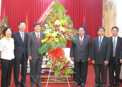 (Website TU)- Nhân kỷ niệm 55 năm Ngày thành lập Đảng Nhân dân cách mạng Lào (22-3-1955 – 22-3-2010), sáng 22-3, đoàn lãnh đạo TPHCM do đồng chí Nguyễn Văn Đua, Phó Bí thư Thường trực Thành ủy TPHCM dẫn đầu đã đến thăm, tặng hoa chúc mừng tập thể Lãnh sự quán Lào tại TPHCM.