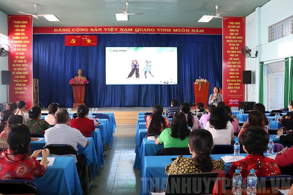 Thạc sĩ Nguyễn Thị Thu Hiền báo cáo tại buổi tập huấn(Thanhuytphcm.vn) - Ngày 7/10, UBND huyện Củ Chi tổ chức hội nghị tập huấn nghiệp vụ công tác gia đình cho cộng tác viên dân số kiêm công tác gia đình và trẻ em trên địa bàn huyện Củ Chi năm 2022.