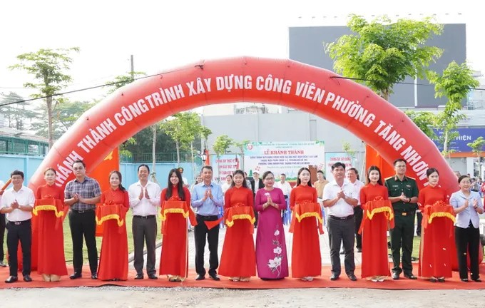 Các đại biểu cắt băng khánh thành công viênSáng 24/4, phường Tăng Nhơn Phú (TPHCM) tổ chức khánh thành và đưa vào sử dụng công trình công viên cây xanh trên địa bàn.