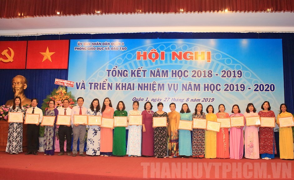Trao Giấy khen cho các trường học nỗ lực tiêu biểu trong thực hiện nhiệm vụ năm học 2018 - 2019(Thanhuytphcm.vn) - Ngày 27/8, Phòng Giáo dục và Đào tạo Quận 1 tổ chức hội nghị tổng kết năm học 2018 - 2019 và triển khai nhiệm vụ năm học 2019 - 2020. Đến dự có các đồng chí: Nguyễn Văn Hiếu, Phó Giám đốc Sở Giáo dục và Đào tạo TPHCM; Nguyễn Trung Châu Tuyên, Trưởng Ban Tuyên giáo Quận ủy Quận 1; Nguyễn Duy An, Chủ tịch HĐND Quận 1; Nguyễn Thị Thu Hường, Phó Chủ tịch UBND quận; Dương Thị Hồng Gấm, Chủ tịch Ủy ban MTTQ Việt Nam quận.
