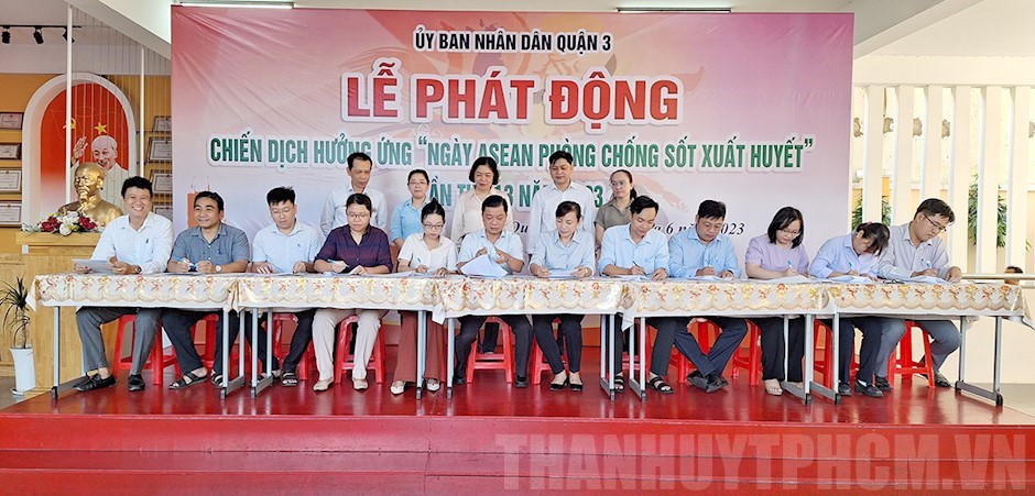 Lãnh đạo 12 phường ký kết liên tịch thực hiện chiến dịch hưởng ứng “Ngày ASEAN phòng chống sốt xuất huyết” năm 2023(Thanhuytphcm.vn) - Sáng 20/6, UBND Quận 3 tổ chức lễ phát động chiến dịch hưởng ứng “Ngày ASEAN phòng, chống sốt xuất huyết” lần thứ 13 năm 2023.