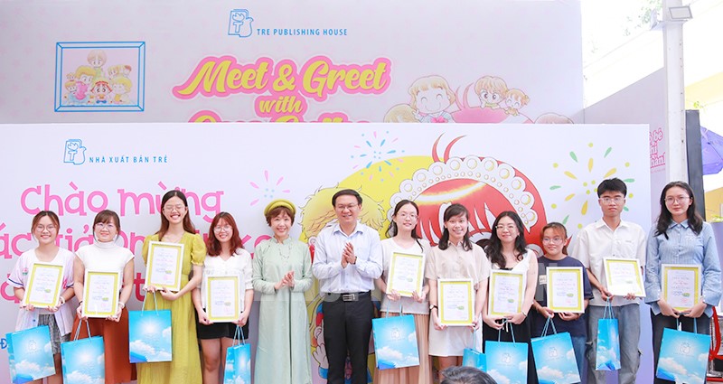 Giám đốc Sở Thông tin và Truyền thông TPHCM Lâm Đình Thắng cùng tác giả Ono Eriko trao giải cho bạn đọc tham gia cuộc thi “Nhóc Miko và tôi”(Thanhuytphcm.vn) - Sáng 21/4, Nhà xuất bản Trẻ tổ chức buổi giao lưu và ký tặng sách của tác giả Ono Eriko - tác giả truyện manga best seller của Nhật Bản, nhân lần đầu tiên tác giả Ono Eriko đến Việt Nam dịp ngày Sách và Văn hóa đọc Việt Nam lần 3 năm 2024 tại Đường Sách TPHCM.