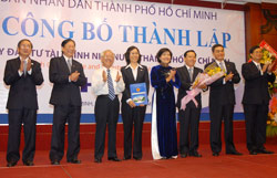 Chủ tịch UBND TPHCM Lê Hoàng Quân (thứ 3 bên trái) và Phó Chủ tịch UBND TPHCM Nguyễn Thị Hồng (giữa) trao quyết định thành lập và chúc mừng Ban điều hành HFIC (Website TU) - Ngày 16-3, Ủy ban Nhân dân Thành phố Hồ Chí Minh đã tổ chức công bố thành lập Công ty Đầu tư tài chính nhà nước TPHCM (HFIC). Chủ tịch UBND TPHCM Lê Hoàng Quân, Thứ trưởng Thường trực Bộ Tài Chính Nguyễn Công Nghiệp, Phó Chủ tịch UBND TPHCM Nguyễn Thị Hồng và đại diện các công ty tài chính, ngân hàng trong và ngoài nước đã tham dự lễ ra mắt