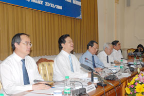 Phát biểu kết luận, Thủ tướng Nguyễn Tấn Dũng đánh giá cao nỗ lực của Đảng bộ, chính quyền, Mặt trận, đoàn thể và nhân dân TPHCM trong việc kiềm chế lạm phát và giữ vững ổn định kinh tế vĩ mô trong năm vừa qua. Theo Thủ tướng, tiếp sau khủng hoảng tài chính là suy thoái kinh tế sẽ tác động rất mạnh vào nền kinh tế nước ta khiến xuất khẩu giảm sút. Do đó Thủ tướng yêu cầu trong năm 2009, TP cần phát huy lợi thế là trung tâm kinh tế và khoa học công nghệ lớn của cả nước, đóng góp 21% GDP, 30% giá trị sản xuất công nghiệp và xuất khẩu, phải là đầu tàu để cùng cả nước ngăn chặn suy giảm kinh tế, duy trì tăng trưởng và đảm bảo an sinh xã hội.