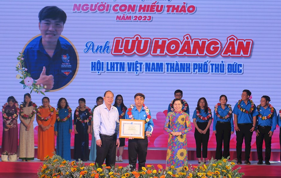 Đồng chí Nguyễn Hồ Hải và đồng chí Nguyễn Trần Phượng Trân tuyên dương gương Người con hiếu thảo năm 2023(Thanhuytphcm.vn) – Sáng 7/10, Hội Liên hiệp Thanh niên (LHTN) Việt Nam Thành phố phối hợp Hội Liên hiệp phụ nữ (LHPN) Thành phố tổ chức chương trình Tuyên dương Gương “Người con hiếu thảo” năm 2023.