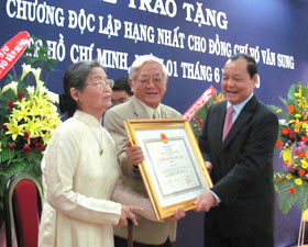Bí thư Thành ủy TPHCM Lê Thanh Hải trao tặng Huân chương Độc lập hạng Nhất cho đồng chí Võ Văn Sung. (Website TU)- Ngày 1-6, tại TPHCM, thừa ủy quyền của Chủ tịch nước Nguyễn Minh Triết, đồng chí Lê Thanh Hải, Ủy viên Bộ Chính trị, Bí thư Thành ủy TPHCM đã trao tặng Huân chương Độc lập hạng Nhất cho đồng chí Võ Văn Sung, nguyên Trợ lý Bộ trưởng Ngoại giao, nguyên Đại sứ đặc mệnh toàn quyền Việt Nam tại các nước: Pháp, Hà Lan, Bỉ, Luxemburg, Thụy Sĩ, Nhật Bản.