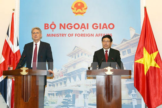 Đánh giá cao chuyến thăm Việt Nam của Bộ trưởng Ngoại giao Vương quốc Anh Philip Hammond, Phó Thủ tướng, Bộ trưởng Ngoại giao Phạm Bình Minh tin tưởng, chuyến thăm sẽ góp phần củng cố và tăng cường hơn nữa quan hệ Đối tác chiến lược giữa hai nước.