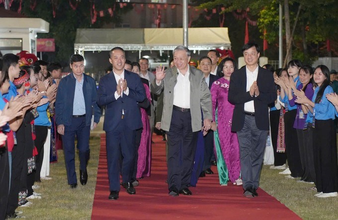 Cùng dự với Tổng Bí thư Tô Lâm có các đồng chí: Bùi Thị Minh Hoài, Ủy viên Bộ Chính trị, Bí thư Trung ương Đảng, Chủ tịch Ủy ban Trung ương MTTQ Việt Nam; Nguyễn Duy Ngọc, Ủy viên Bộ Chính trị, Bí thư Thành ủy Hà Nội…; đại diện các cơ quan của Trung ương và TP Hà Nội, và đông đảo bà con nhân dân trên địa bàn phường Thượng Cát.