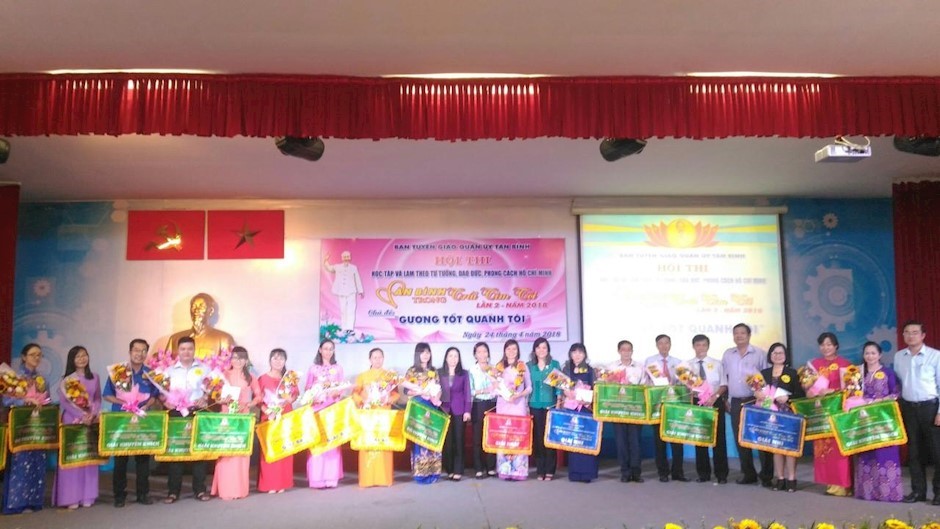 Ban Giám khảo hội thi chụp hình lưu niệm với thí sinh(Thanhuytphcm.vn) - Ngày 24/4, Ban Tuyên giáo Quận ủy Tân Bình tổ chức vòng chung kết hội thi “Tân Bình trong trái tim tôi” lần 2 chủ đề “Gương tốt quanh tôi” năm 2018, nhằm chào mừng kỷ niệm 43 năm giải phóng miền Nam, thống nhất đất nước (30/4/1975 – 30/4/2018) và Quốc tế Lao động 01/5; 128 năm ngày sinh Chủ tịch Hồ Chí Minh (19/5/1890 – 19/5/2018); 107 năm ngày Bác Hồ ra đi tìm đường cứu nước (05/6/1911 – 05/6/2018); 70 năm ngày Bác Hồ ra “Lời kêu gọi thi đua ái quốc” (11/6/1948 – 11/6/2018).