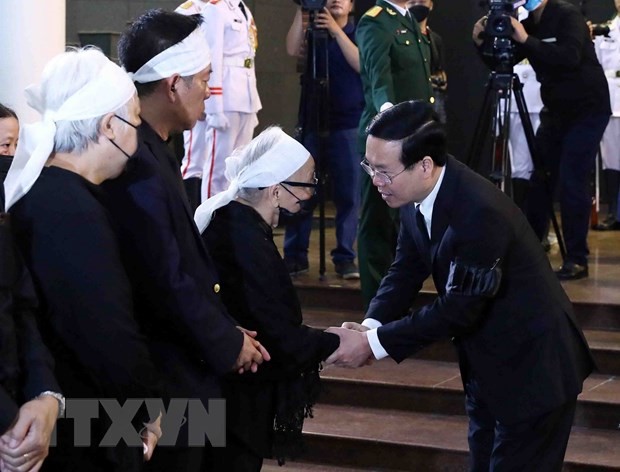 Nguyên Tổng Bí thư Nông Đức Mạnh, nguyên Chủ tịch nước: Trương Tấn Sang, Nguyễn Xuân Phúc; nguyên Thủ tướng Chính phủ Nguyễn Tấn Dũng; nguyên Chủ tịch Quốc hội: Nguyễn Văn An, Nguyễn Sinh Hùng, Nguyễn Thị Kim Ngân... tham gia đoàn viếng.