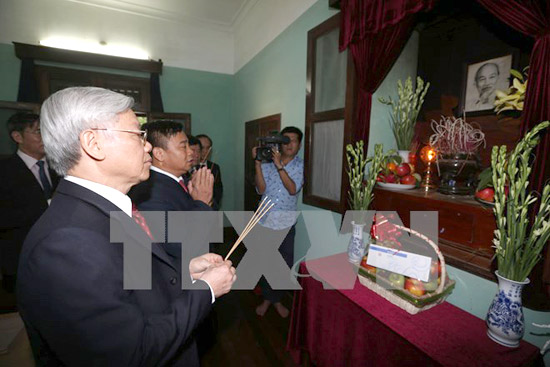 Tổng Bí thư Nguyễn Phú Trọng thăm nơi ở và làm việc của Chủ tịch Hồ Chí Minh. (Ảnh: TTXVN) |