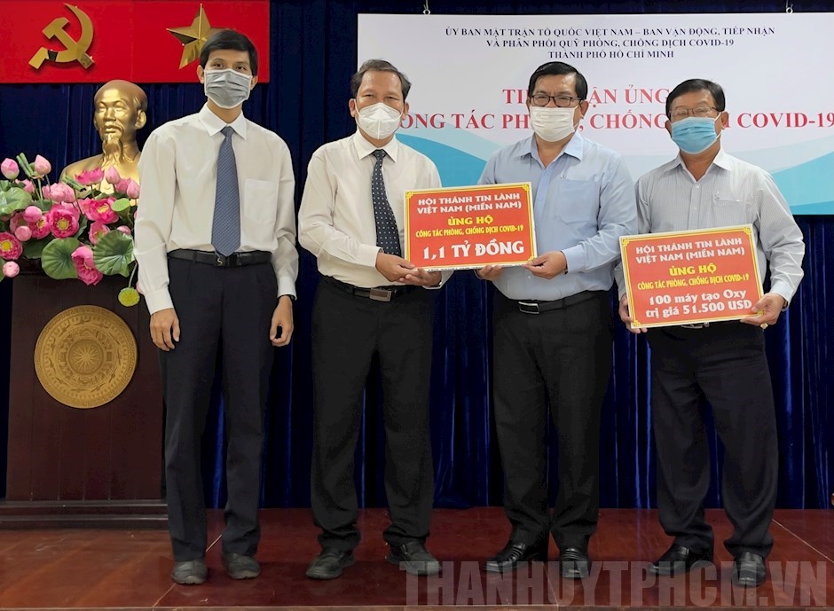 Trước đó, ngày 18/7, Tổng Liên hội Hội thánh Tin Lành Việt Nam (miền Nam) đã vận động, ủng hộ 100 máy cung cấp Oxy cho bệnh nhân với tổng giá trị là 51.500 USD.