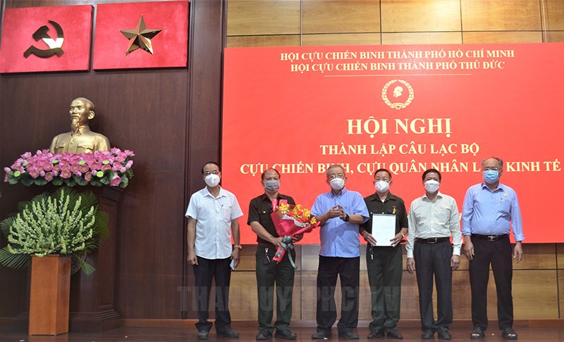Đồng chí Nguyễn Văn Hòa trao quyết định và tặng hoa chúc mừng Ban Chủ nhiệm CLB Cựu chiến binh, Cựu quân nhân làm kinh tế.(Thanhuytphcm.vn) - Chiều 7/1, Hội Cựu chiến binh TP Thủ Đức tổ chức ra mắt CLB Cựu chiến binh, Cựu quân nhân làm kinh tế. CLB được thành lập dựa trên cơ sở tự nguyện của hội viên cựu chiến binh, cựu quân nhân làm kinh tế trên địa bàn, hoạt động dưới sự lãnh đạo, chỉ đạo trực tiếp của Thường trực Hội Cựu chiến binh TP Thủ Đức.