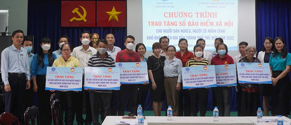 Phát biểu tại buổi lễ, bà Lê Thị Bấc, Phó Chủ tịch Ủy ban MTTQ Việt Nam TP Thủ Đức cho biết: Chính sách BHXH là một trong những chính sách an sinh xã hội rất nhân văn của Đảng và Nhà nước, nhằm đảm bảo mọi công dân có quyền được hưởng an sinh xã hội. Chính vì vậy, hoạt động trao tặng sổ BHXH cho người dân thuộc hộ nghèo, hộ cận nghèo sẽ giúp góp phần đẩy nhanh tiến độ giảm nghèo, không để tái nghèo; cải thiện và nâng cao mức sống, chất lượng cuộc sống, tạo điều kiện cho người nghèo thành phố tiếp cận một cách tốt nhất các dịch vụ xã hội cơ bản về giáo dục - đào tạo, y tế, việc làm, BHXH, nhà ở…