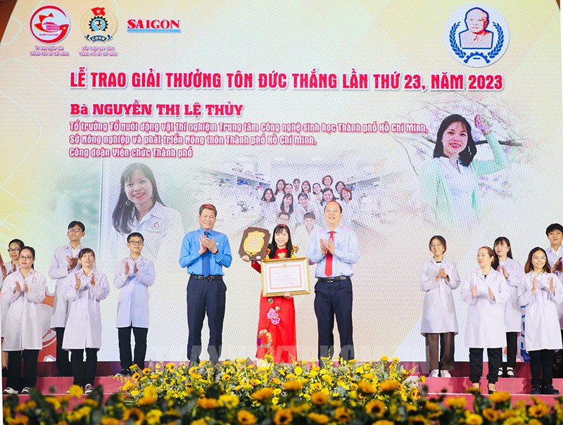 Phó Chủ tịch UBND TP Dương Anh Đức và Chủ tịch LĐLĐ TP Trần Thị Diệu Thúy trao giải thưởng Tôn Đức Thắng đến cho ông Nguyễn Thanh Phương.Bên cạnh đó, hướng trọng tâm giải thưởng Tôn Đức Thắng vào những cá nhân ở những ngành công nghiệp mũi nhọn, dịch vụ có tính chất công nghiệp, công nghệ thông minh; đẩy mạnh công tác tuyên truyền những tấm gương trong phong trào thi đua “Lao động giỏi, Lao động sáng tạo”.