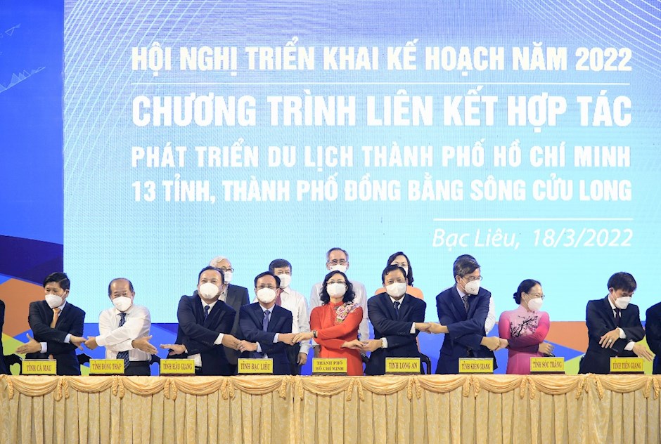 Lãnh đạo TPHCM và 13 tỉnh, thành Đồng bằng sông Cửu Long ký kết hợp tác phát triển du lịch(Thanhuytphcm.vn) - Ngày 18/3, Hội nghị triển khai chương trình liên kết hợp tác phát triển du lịch TPHCM và 13 tỉnh, thành Đồng bằng sông Cửu Long (ĐBSCL) năm 2022 và phát động mở cửa lại du lịch trong điều kiện tình hình mới đã diễn ra ở tỉnh Bạc Liêu.