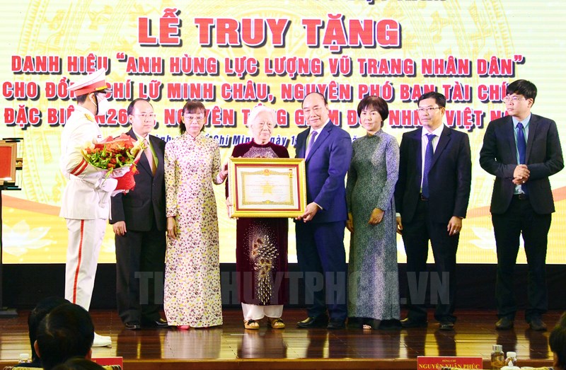 Chủ tịch nước Nguyễn Xuân Phúc trao bằng truy tặng danh hiệu Anh hùng Lực lượng vũ trang Nhân dân đến gia đình đồng chí Lữ Minh Châu.(Thanhuytphcm.vn) - Chiều 16/3, tại TPHCM, Ngân hàng Nhà nước Việt Nam tổ chức Lễ truy tặng danh hiệu Anh hùng Lực lượng vũ trang Nhân dân cho đồng chí Lữ Minh Châu, nguyên Phó Trưởng ban Tài chính đặc biệt (N.2683), nguyên Ủy viên Ban Chấp hành Trung ương Đảng, nguyên Tổng Giám đốc Ngân hàng Nhà nước Việt Nam (nay gọi là Thống đốc Ngân hàng Nhà nước Việt Nam).