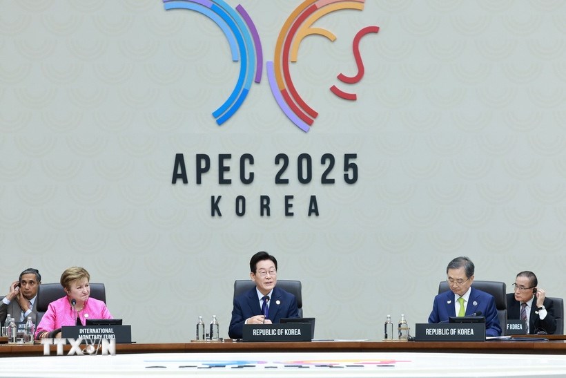 Tổng thống Hàn Quốc Lee Jae Myung (giữa) phát biểu tại phiên thảo luận của Hội nghị cấp cao APEC ở Gyeongju, Hàn Quốc, ngày 31/10/2025. (Ảnh: Yonhap/TTXVN)Hội nghị Cấp cao Diễn đàn Hợp tác Kinh tế châu Á-Thái Bình Dương (APEC) 2025 đã tiến hành phiên bế mạc ngày 1/11 tại thành phố Gyeongju (Đông Nam Hàn Quốc).