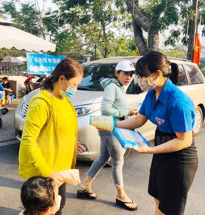 Đoàn viên, thanh niên Quận 7 phát tờ rơi tuyên truyền phòng, chống dịch bệnh Covid - 19 cho người dân trên địa bàn.(Thanhuytphcm.vn) - Trước tình hình dịch bệnh viêm đường hô hấp cấp do chủng mới của virus Corona (Covid - 19) đang có diễn biến phức tạp, thời gian qua, tuổi trẻ Quận 7 đã có nhiều hoạt động hết sức thiết thực nhằm phát huy vai trò xung kích tình nguyện của thanh niên trong việc chung tay phòng, chống dịch bệnh, bảo vệ sức khỏe cộng đồng.