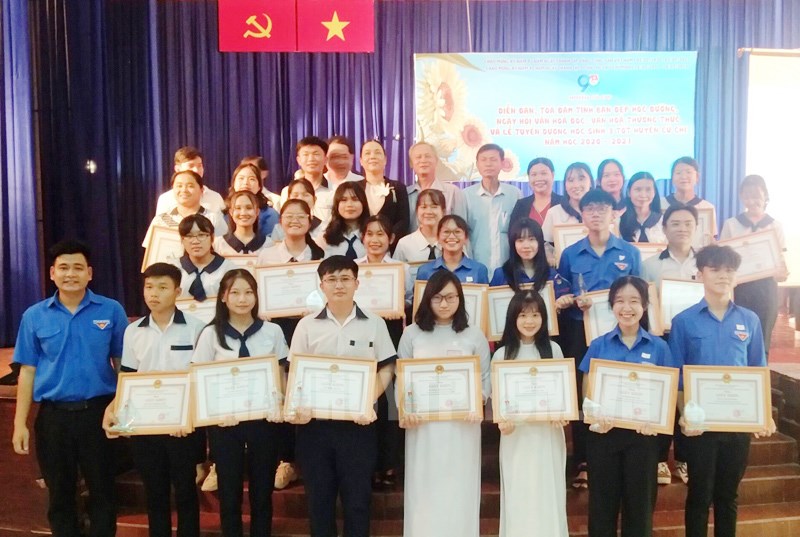 Học sinh nhận danh hiệu gương “Học sinh 3 tốt” cấp huyện năm học 2020 – 2021.(Thanhuytphcm.vn) - Ngày 10/1, Huyện đoàn Củ Chi đã tổ chức diễn đàn, tọa đàm tình bạn đẹp học đường, ngày hội văn hóa đọc, văn hóa thưởng thức và lễ tuyên dương “Học sinh 3 tốt” huyện Củ Chi năm học 2020 – 2021. Đến dự có đồng chí Nguyễn Văn Đun, Huyện ủy viên, Phó Trưởng Ban Dân vận Huyện ủy cùng hơn 200 đoàn viên, thanh niên, học sinh trên địa bàn huyện.