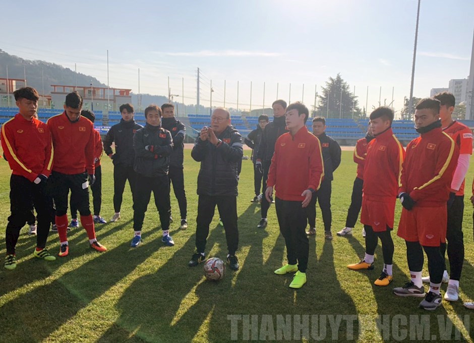 HLV Park Hang-seo phổ biến kế hoạch với các học trò trước 1 buổi tập(Thanhuytphcm.vn) - Chuyến tập huấn với thời gian 10 ngày tại Hàn Quốc của đội tuyển U23 Việt Nam đã kết thúc vào ngày 21/12 với trận đấu tập huấn thứ 2 gặp Busan Transportation Cooperation. Trận dấu khép lại với tỷ số 3-2 nghiêng về đội U23 Việt Nam.