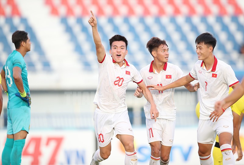 Trận thắng đã giúp U23 Việt Nam đạt mục tiêu là vào chung kết, lúc này, họ sẽ hướng đến mục tiêu tiếp theo là bảo vệ ngôi vô địch. (Ảnh: Nghĩa Hưng)Bàn thắng sớm đã giúp các cầu thủ Việt Nam lên tinh thần và vận hành đấu pháp mạch lạc hơn, nhất là kiểm soát tốt khu trung tuyến để “ra đòn” trong các pha tấn công nhanh khi mà đội Malaysia phải dâng cao tấn công tìm bàn gỡ. Cách biệt được nhân đôi cho các cầu thủ Việt Nam vào phút 32, Đức Việt thực hiện đường chuyền thuận lợi để Quốc Việt tung cú sút xa hiểm hóc ghi bàn nâng tỷ số 2-0. Chưa dừng lại ở đó, vào cuối hiệp 1, Xuân Tiến kịp ghi bàn thắng thứ 2 cho riêng mình để giúp đội nhà tạo khoảng cách 3-0.